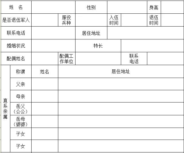 附件2:武平縣公開招聘勞務(wù)派遣工作人員報(bào)名表