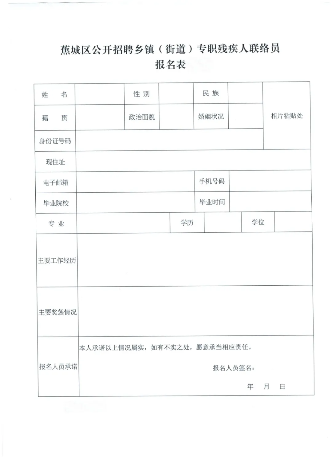 3.報(bào)名材料(1)蕉城區(qū)公開(kāi)招聘鄉(xiāng)鎮(zhèn)(街道)專(zhuān)職殘疾人聯(lián)絡(luò)員報(bào)名表1份(見(jiàn)附件,報(bào)名表須附照片);(2)身份證原件及復(fù)印件1份?,F(xiàn)場(chǎng)報(bào)名時(shí)查驗(yàn)原件,報(bào)名資料必須真實(shí)準(zhǔn)確,并與原件相符。