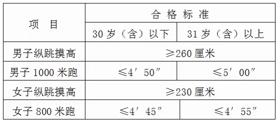 1991年9月30日(含)以后出生的考生,執(zhí)行30歲(含)以下體能測試標(biāo)準(zhǔn);1991年9月29日(含)以前出生的考生,執(zhí)行31歲(含)以上體能測試標(biāo)準(zhǔn)。