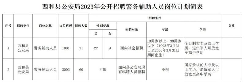 附件:1、西和縣公安局2023年公開招聘警務(wù)輔助人員崗位計(jì)劃簡(jiǎn)表