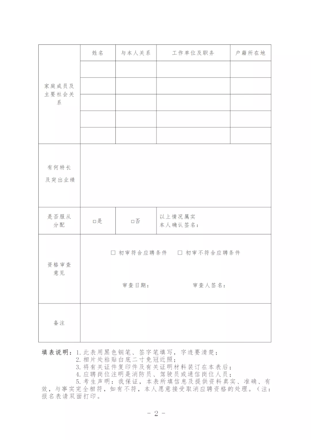 4、報(bào)名人員需提交以下材料:填寫(xiě)《報(bào)名表登記表》一式兩份;高校畢業(yè)生持就業(yè)報(bào)到證、畢業(yè)證、身份證、戶(hù)口簿原件及復(fù)印件;退役士兵持退伍證、身份證、戶(hù)口本原件及復(fù)印件;有專(zhuān)業(yè)資質(zhì)或?qū)iT(mén)技能的需提供相關(guān)證件原件及復(fù)印件;已就業(yè)的需提供所在單位出具的同意報(bào)考證明;所有報(bào)考人員均需出具個(gè)人銀行征信報(bào)告及公安機(jī)關(guān)出具的個(gè)人及直系親屬有無(wú)違法違紀(jì)犯罪證明,另附近期正面免冠紅底二寸照片4張、48小時(shí)以?xún)?nèi)核酸檢測(cè)證明及新冠疫苗注射證明。提交的報(bào)名材料須真實(shí)、準(zhǔn)確,一旦發(fā)現(xiàn)弄虛作假,直接取消報(bào)名資格。