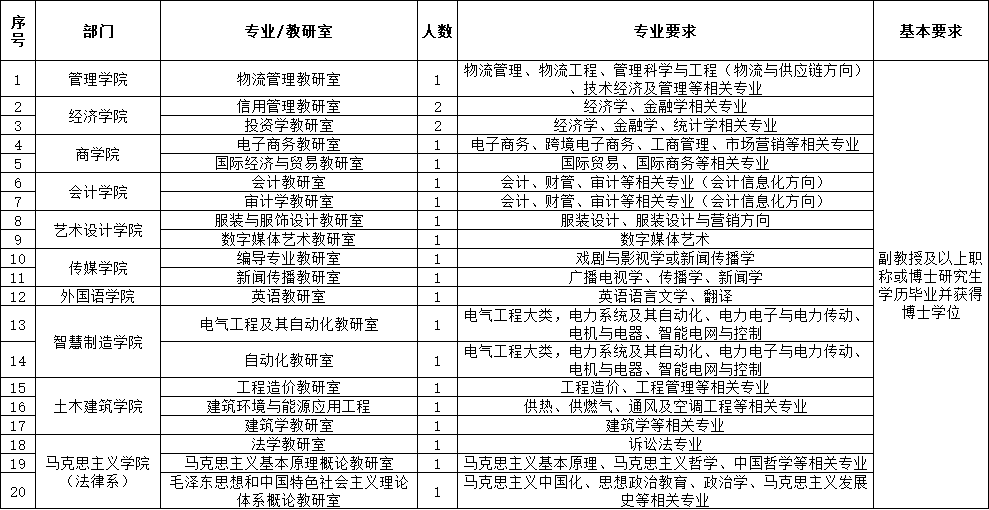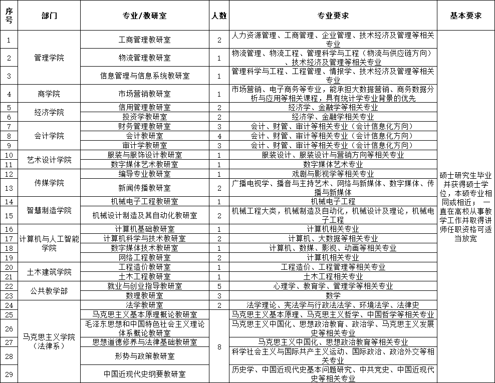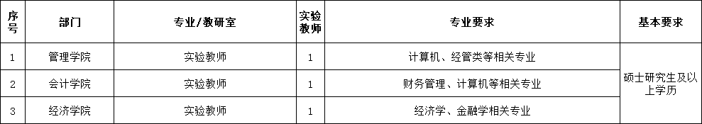 2.一般教師要求碩士研究生畢業(yè)并獲得碩士學位,本碩專業(yè)相同或相近;一直在高校從事教學工作并取得講師任職資格可適當放寬;