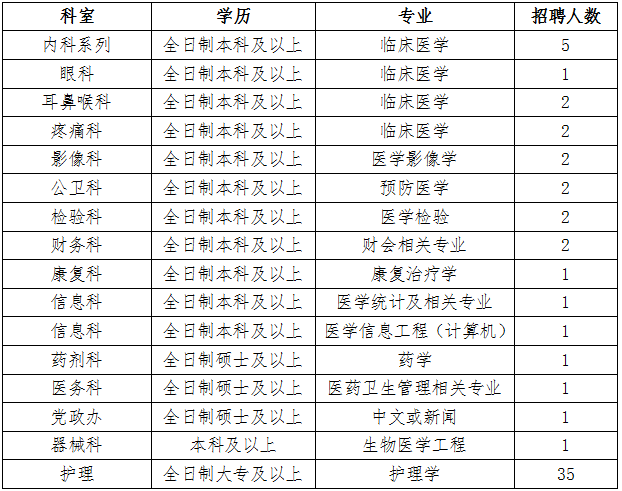 5、有三級(jí)綜合醫(yī)院工作經(jīng)驗(yàn),條件可適當(dāng)放寬(必須提供醫(yī)院工作證明)。