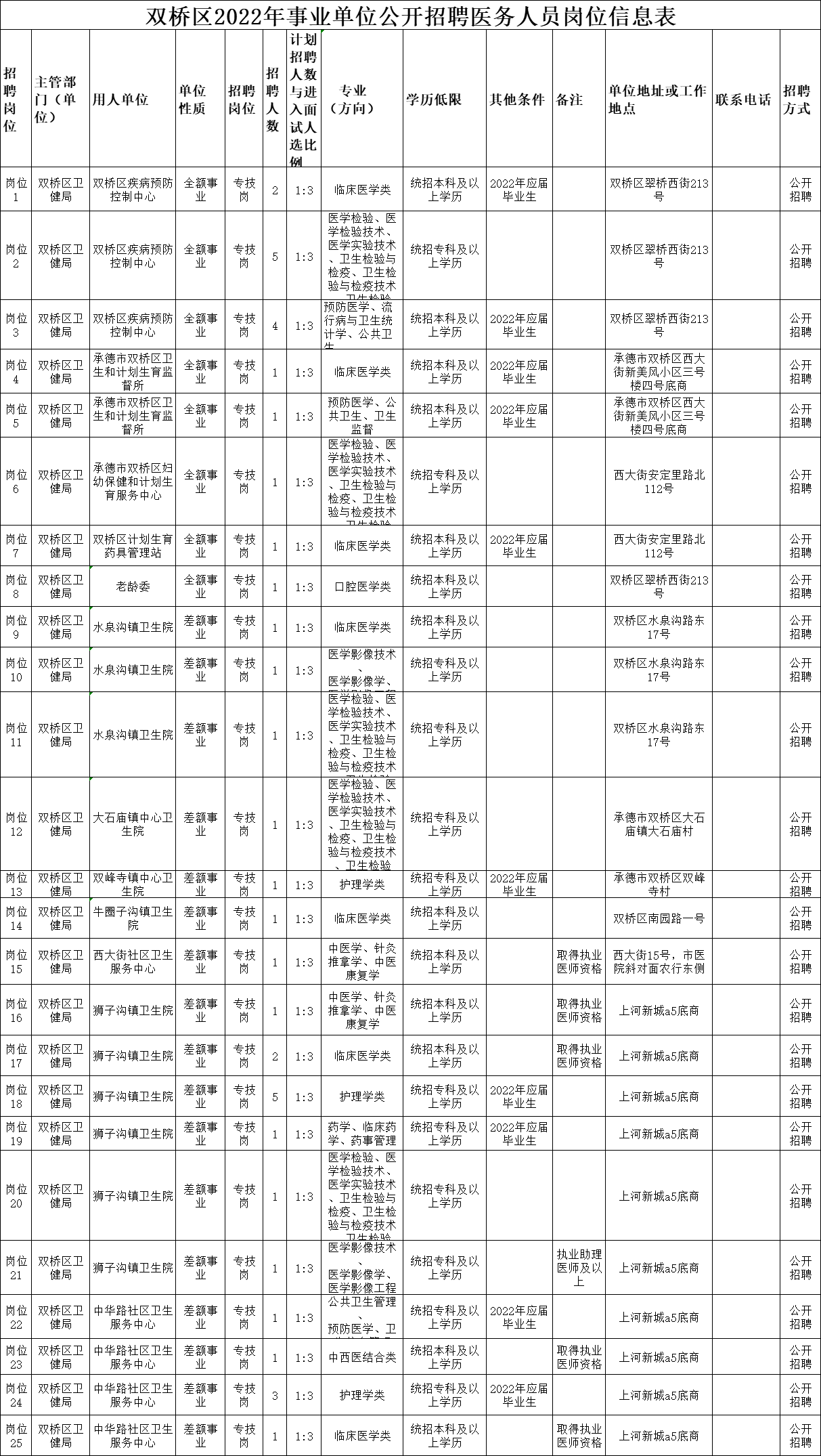 3統(tǒng)招碩士研究生學歷不限戶籍;(具體崗位要求詳見《雙橋區(qū)2022年公開招聘事業(yè)單位醫(yī)務人員崗位信息表》);