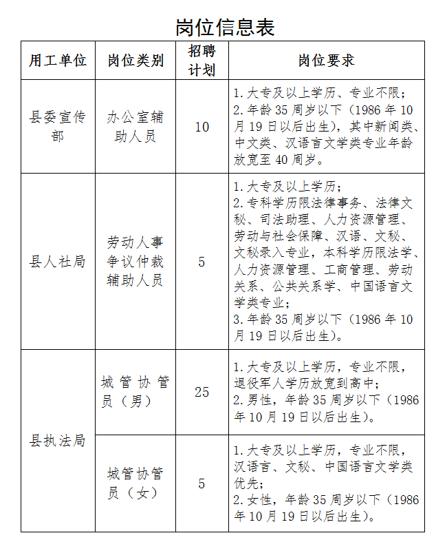 (一)本次招聘僅限2021年4月7日以前進(jìn)入全縣機(jī)關(guān)、事業(yè)單位,在編制部門備案且在崗的人事代理和勞務(wù)派遣人員報考,教育、衛(wèi)生、公安(含消防)以及社區(qū)辦編外人員不在本次招聘范圍;