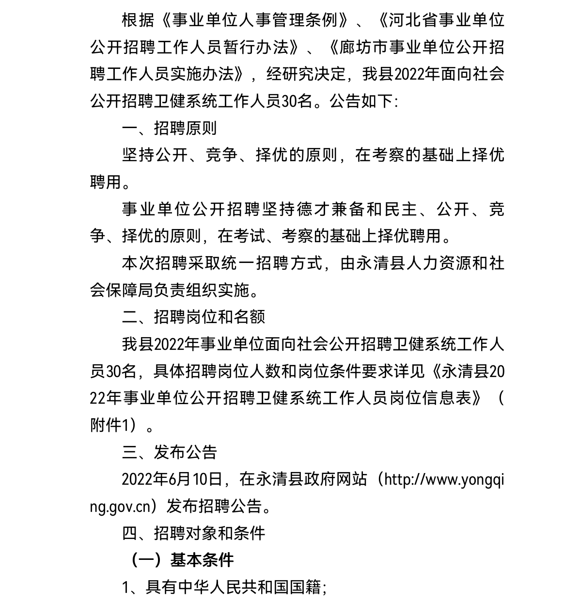 2022年廊坊永清縣事業(yè)單位公開(kāi)招聘衛(wèi)健系統(tǒng)工作人員公告