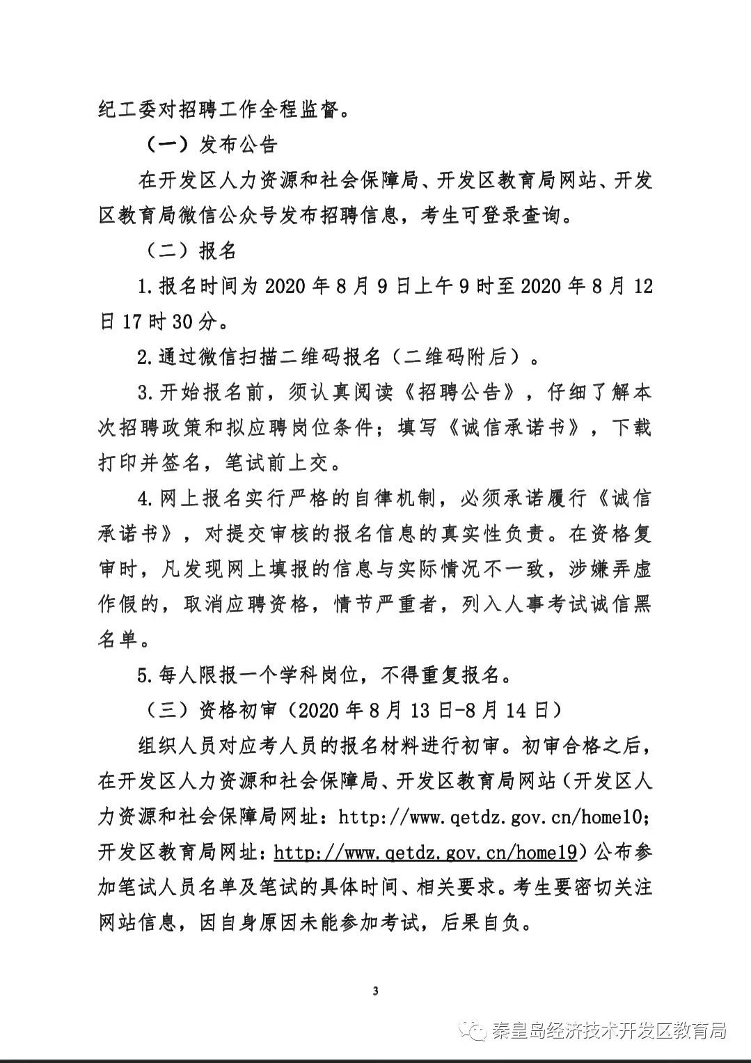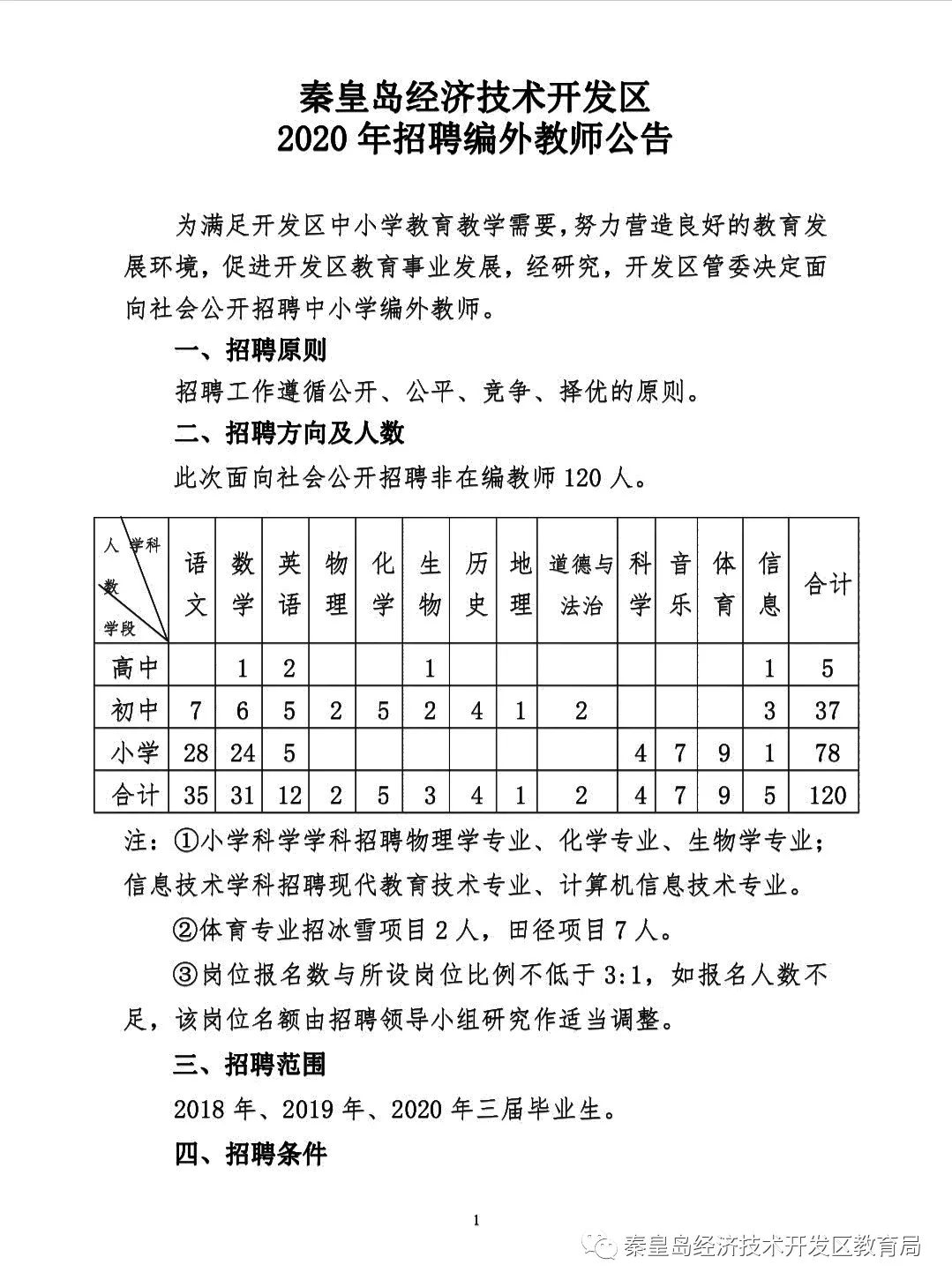 2020年秦皇島開(kāi)發(fā)區(qū)招聘編外教師公告