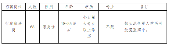 2023-08-11 19:42:30閱讀()中國(guó)雄安為扎實(shí)做好容東城市管理工作,充實(shí)綜合執(zhí)法隊(duì)伍力量,充分發(fā)揮綜合執(zhí)法在工作中的重要作用,根據(jù)容東綜合執(zhí)法隊(duì)伍目前崗位空缺情況和隊(duì)伍建設(shè)需要,特面向社會(huì)招聘容東片區(qū)綜合執(zhí)法輔助人員68名,現(xiàn)將有關(guān)事項(xiàng)公告如下: