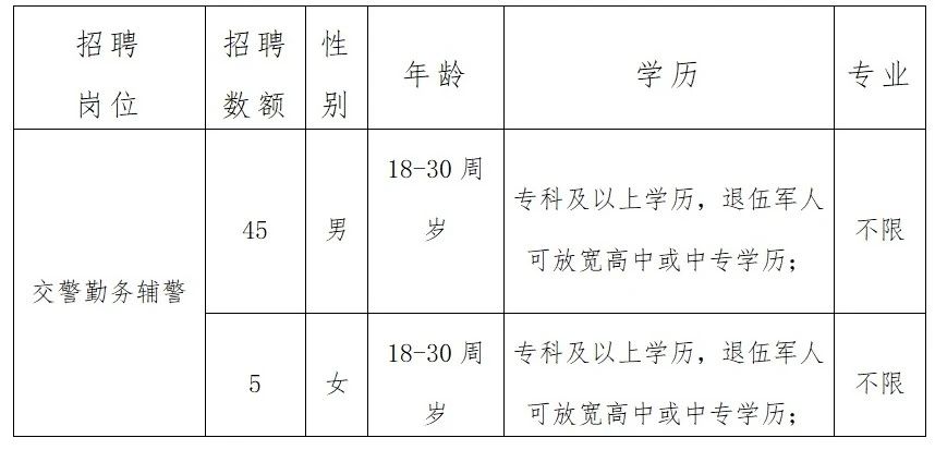 2023-10-19 11:26:38閱讀()安新公安為滿足工作需要,進一步維護和保障我縣道路交通秩序安全,充實和加強公安機關警力,依據(jù)《河北省公安機關警務輔助人員管理條例》等規(guī)定,經(jīng)縣政府研究決定,以人事代理方式面向社會公開招聘警務輔助人員50名,現(xiàn)將有關事項公告如下: