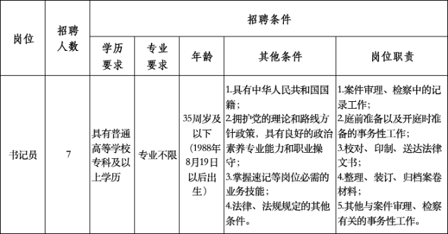 6.有其他不適宜擔(dān)任聘用制書(shū)記員情形的。