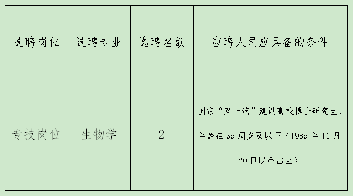我院計(jì)劃此次選聘生物學(xué)博士研究生2名。