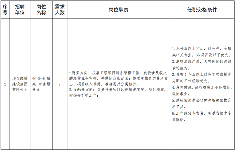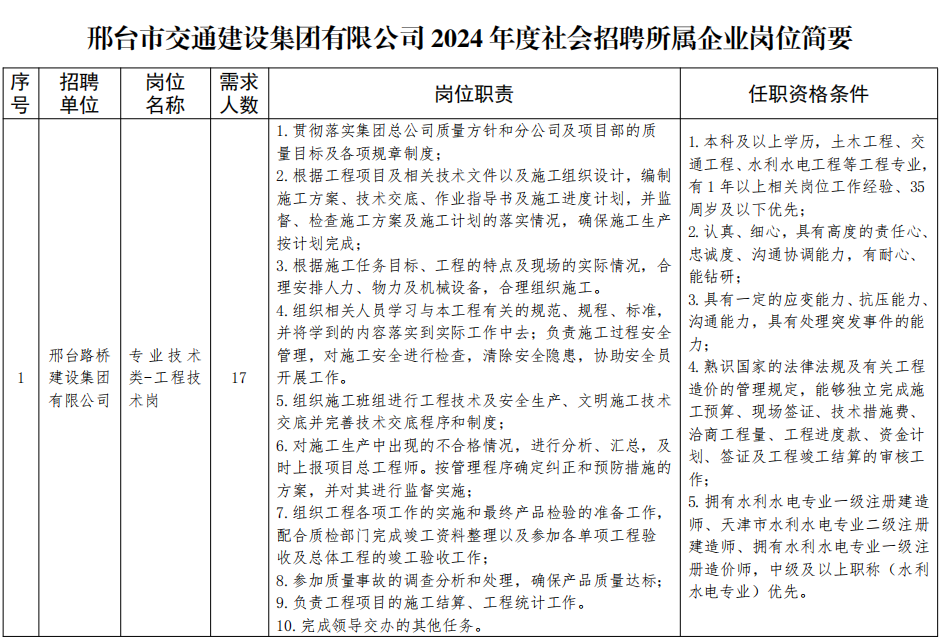 附件:邢臺市交通建設(shè)集團(tuán)有限公司2024年度社會(huì)招聘所屬企業(yè)崗位簡要