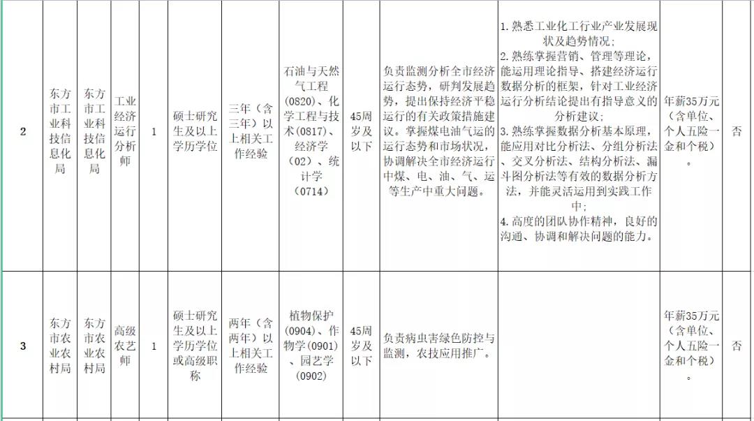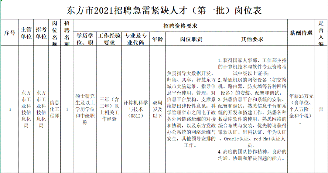 2021年?yáng)|方市招聘急需緊缺人才(第一批)公告(1號(hào))