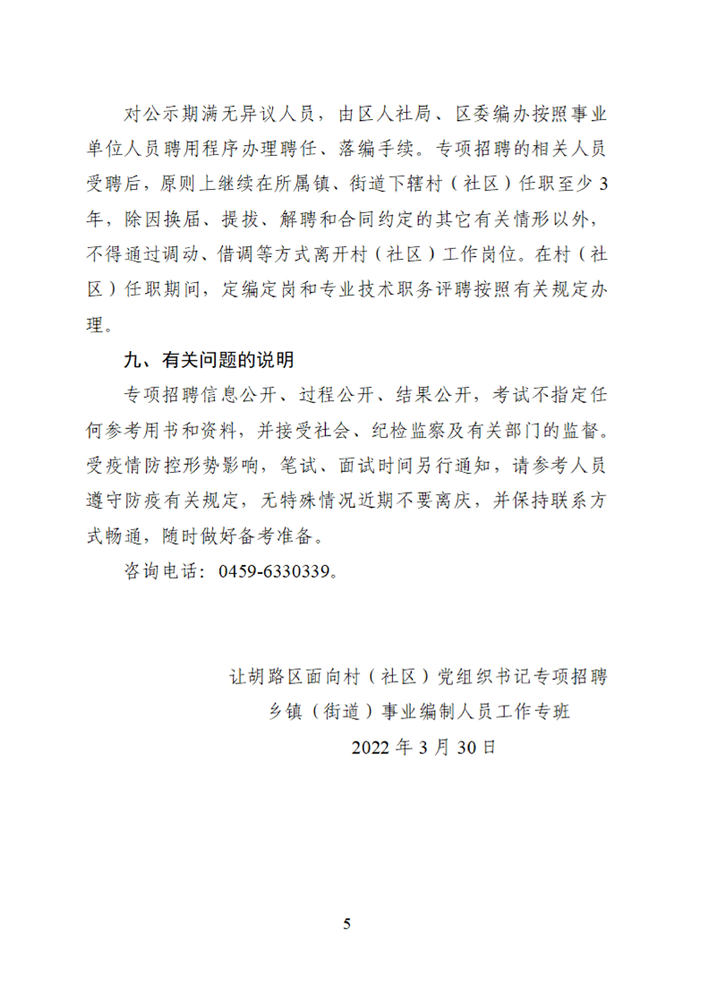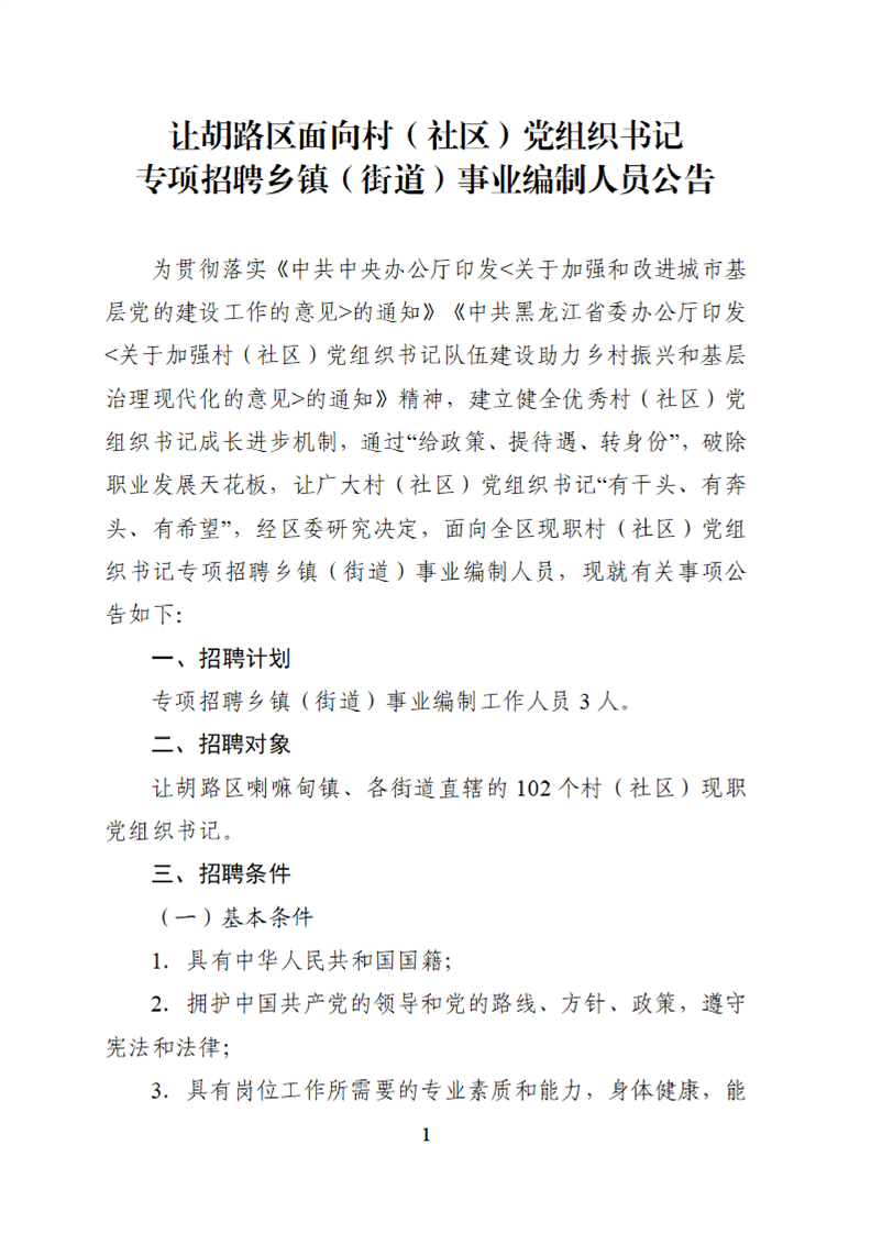 2022年大慶讓胡路區(qū)面向村(社區(qū))黨組織書記專項招聘鄉(xiāng)鎮(zhèn)(街道)事業(yè)編制人員公告