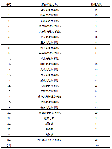 香坊區(qū)各街道辦事處、鎮(zhèn)勞動(dòng)保障協(xié)理員補(bǔ)充招聘名額