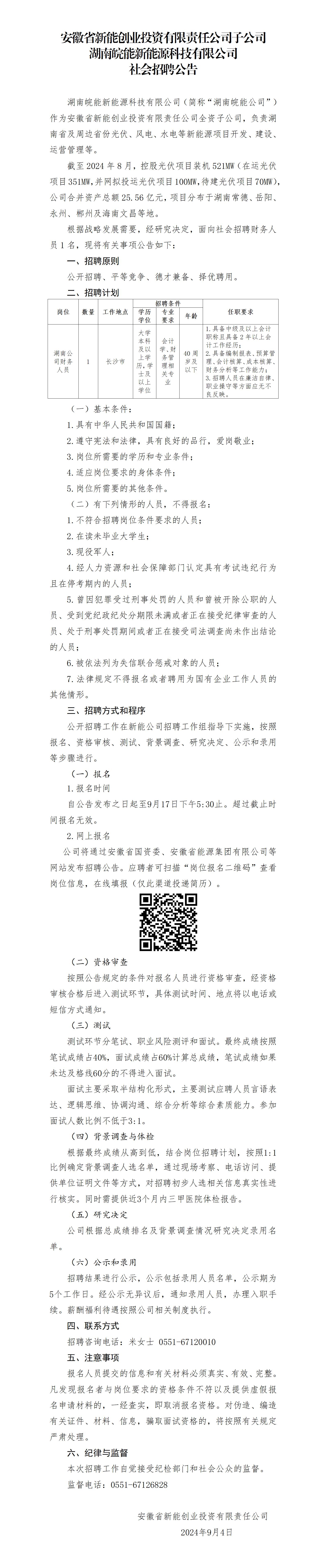 2024年安徽省新能創(chuàng)業(yè)投資有限責(zé)任公司子公司湖南皖能新能源科技有限公司社會招聘公告