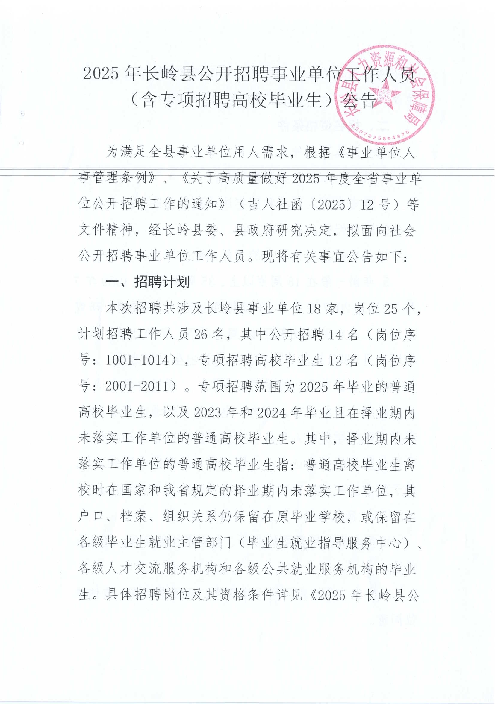 2025年松原長嶺縣公開招聘事業(yè)單位工作人員(含專項(xiàng)招聘高校畢業(yè)生)公告