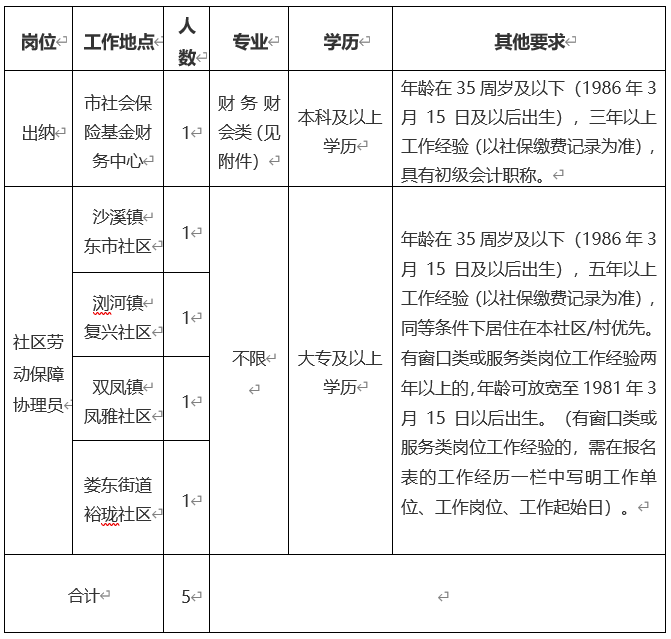 2022-03-13 23:20:26閱讀()太倉市人力資源和社會保障局因工作需要,經(jīng)研究決定,按照“自愿報名、公平競爭、擇優(yōu)錄用”的原則,特面向社會公開招聘工作人員5名,現(xiàn)將招聘事項公布如下: