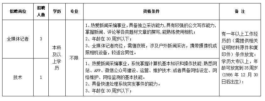 3、報(bào)名注意事項(xiàng):采取現(xiàn)場報(bào)名方式。報(bào)名時須提供近期免冠同底版1寸正面彩色照片3張、本人身份證、畢業(yè)證書、學(xué)位證書、工作經(jīng)歷證明和其他相關(guān)證件原件、復(fù)印件及其他證明材料(如署名完成的新聞作品、美術(shù)設(shè)計(jì)作品、新媒體作品等)。填寫《鹽城市鹽都區(qū)融媒體中心2021年公開招聘工作人員報(bào)名表》(見附件)一式兩份。在規(guī)定時間內(nèi),如本人現(xiàn)場報(bào)名有困難的,可委托他人代為報(bào)名,代報(bào)名人須提供本人身份證及報(bào)考者需提供的報(bào)名材料。