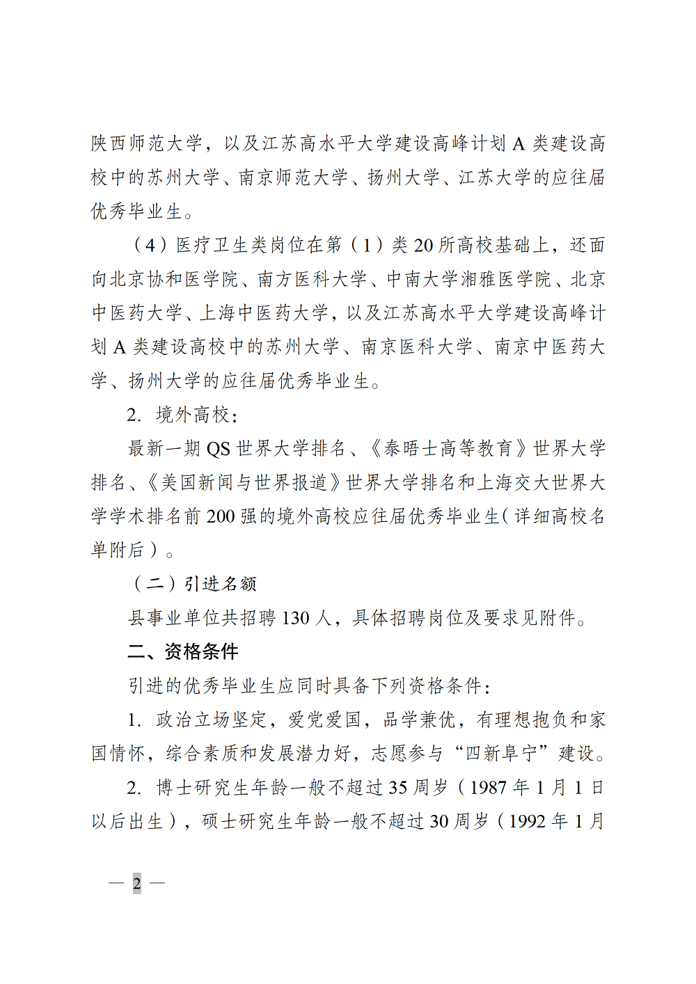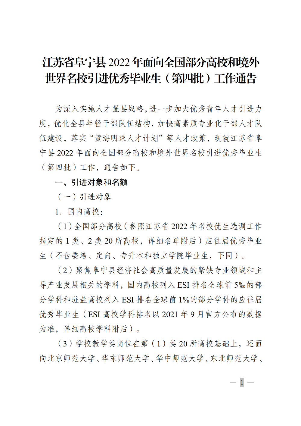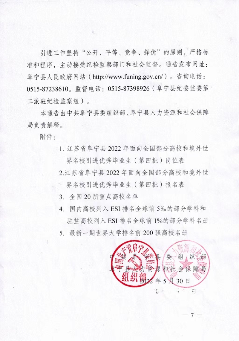 2022年鹽城阜寧縣面向全國部分高校和境外世界名校引進優(yōu)秀畢業(yè)生(第四批)工作通告