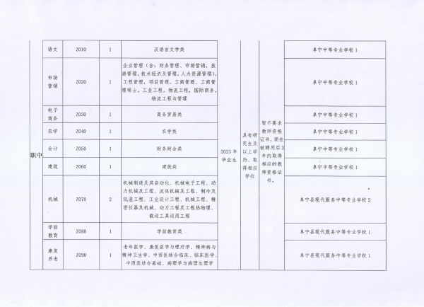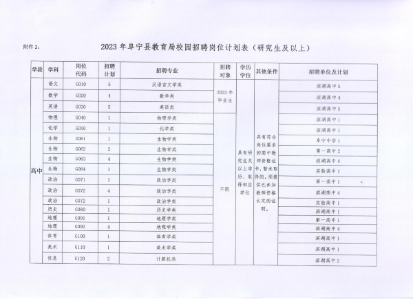 2.2023年阜寧縣教育局校園招聘崗位計劃表(研究生及以上)