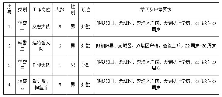 2022-11-25 08:44:32閱讀()朝陽縣人民政府朝陽縣公安局根據(jù)工作需要,決定面向社會公開招考輔警,現(xiàn)將有關(guān)事宜公告如下: