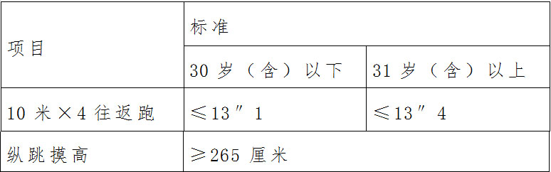 3.體能測試項(xiàng)目和標(biāo)準(zhǔn):