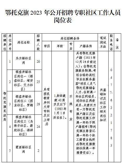 2023年鄂爾多斯鄂托克旗公開(kāi)招聘專(zhuān)職社區(qū)工作人員簡(jiǎn)章
