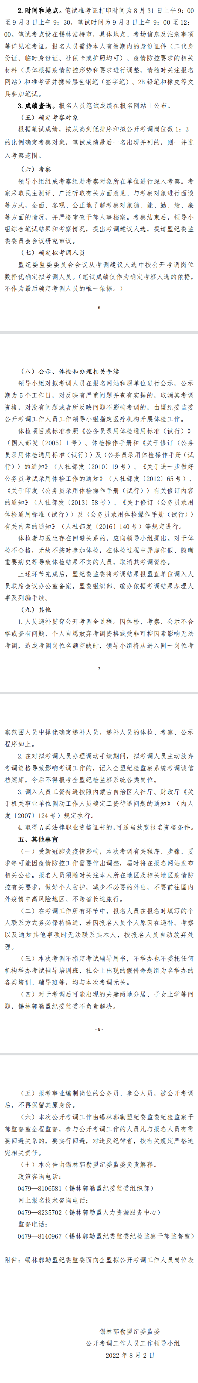 2022年錫林郭勒盟紀(jì)委監(jiān)委公開考調(diào)機關(guān)事業(yè)單位工作人員公告