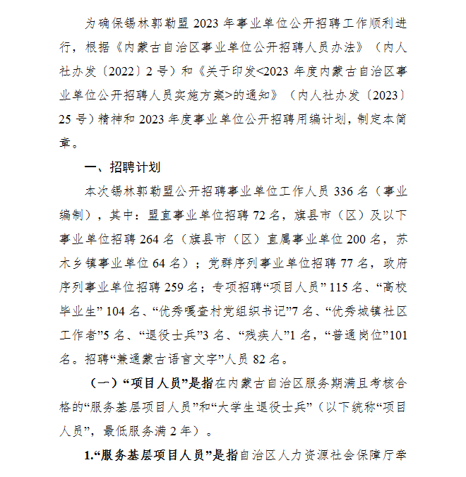 2023年錫林郭勒盟事業(yè)單位公開招聘工作人員簡章