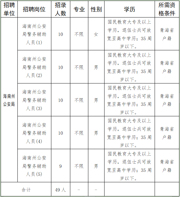 2022年海南州公安局面向社會公開招聘警務(wù)輔助人員公告