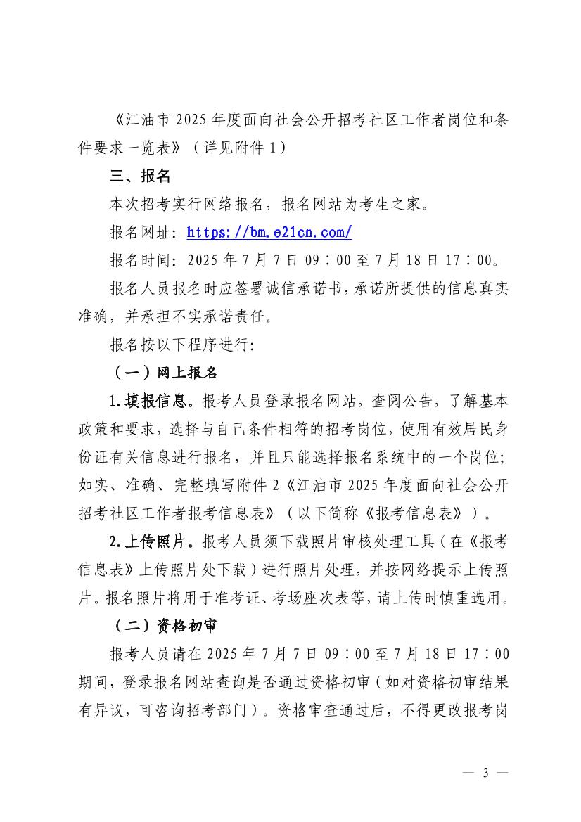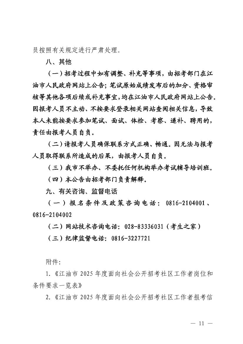 2025年綿陽江油市面向社會公開招考社區(qū)工作者公告