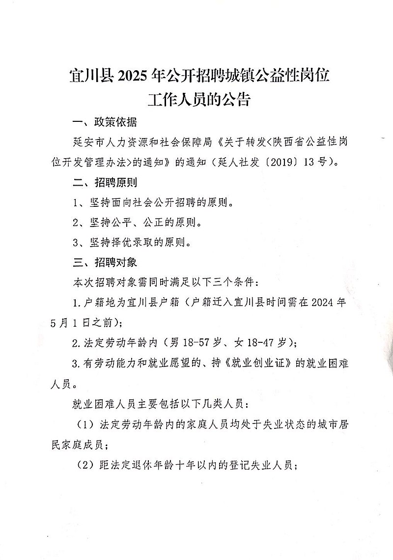 2025年延安宜川縣公開招聘城鎮(zhèn)公益性崗位工作人員公告