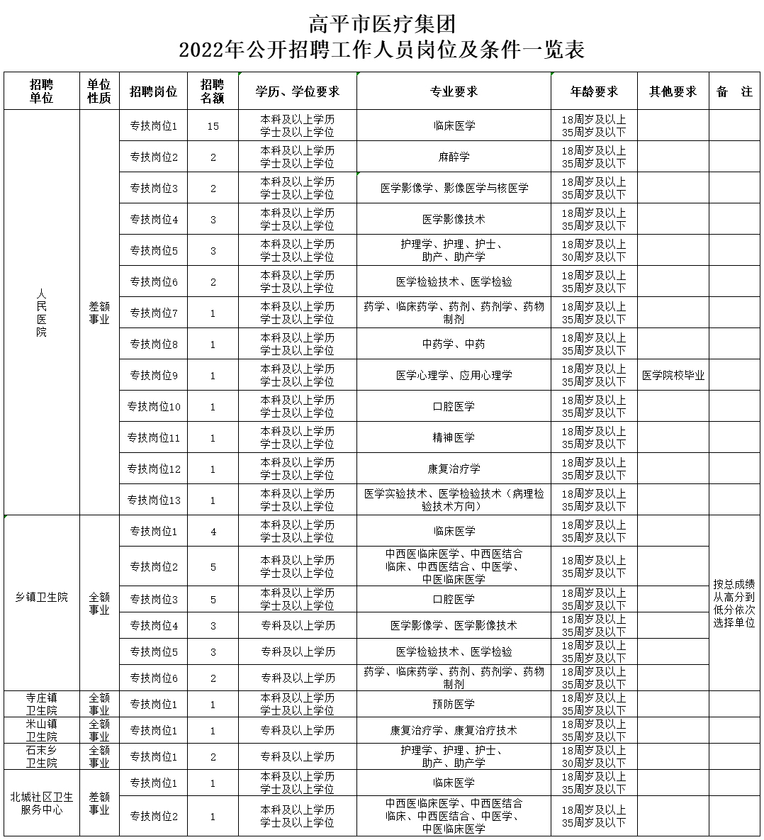 1.高平市醫(yī)療集團(tuán)2022年公開招聘工作人員崗位及條件一覽表