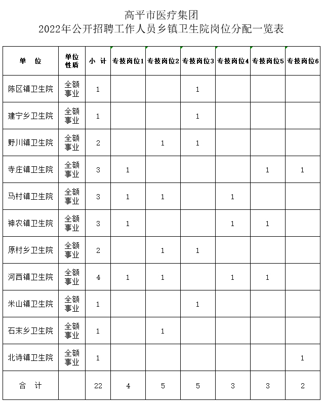 2.高平市醫(yī)療集團(tuán)2022年公開招聘鄉(xiāng)鎮(zhèn)衛(wèi)生院專技崗位分配一覽表