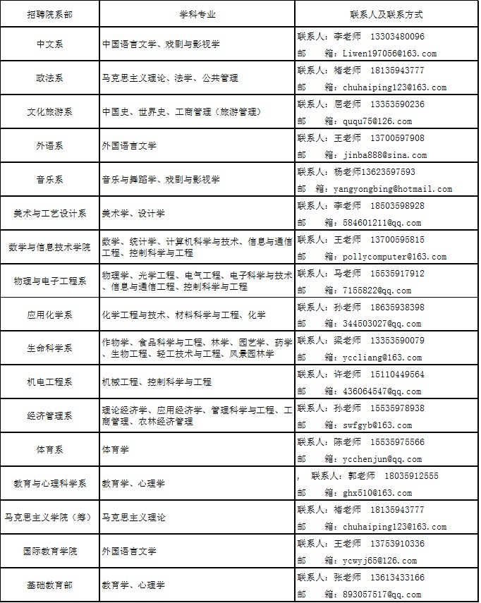 符合條件的國內(nèi)外高校畢業(yè)的博士研究生通過電子郵箱報名應(yīng)聘,應(yīng)聘人員請將個人簡歷電子版發(fā)送至各院系部聯(lián)系人電子郵箱和ycxyrsc@ycu.edu.cn。應(yīng)聘者郵件標(biāo)題格式統(tǒng)一要求為:崗位+姓名+性別+學(xué)科(專業(yè))。