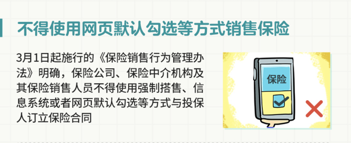 不得使用網(wǎng)頁(yè)默認(rèn)勾選等方式銷售保險(xiǎn)