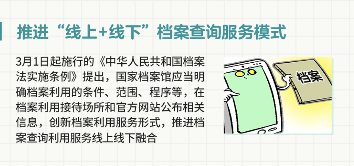 推進(jìn)“線上 + 線下”檔案查詢服務(wù)模式