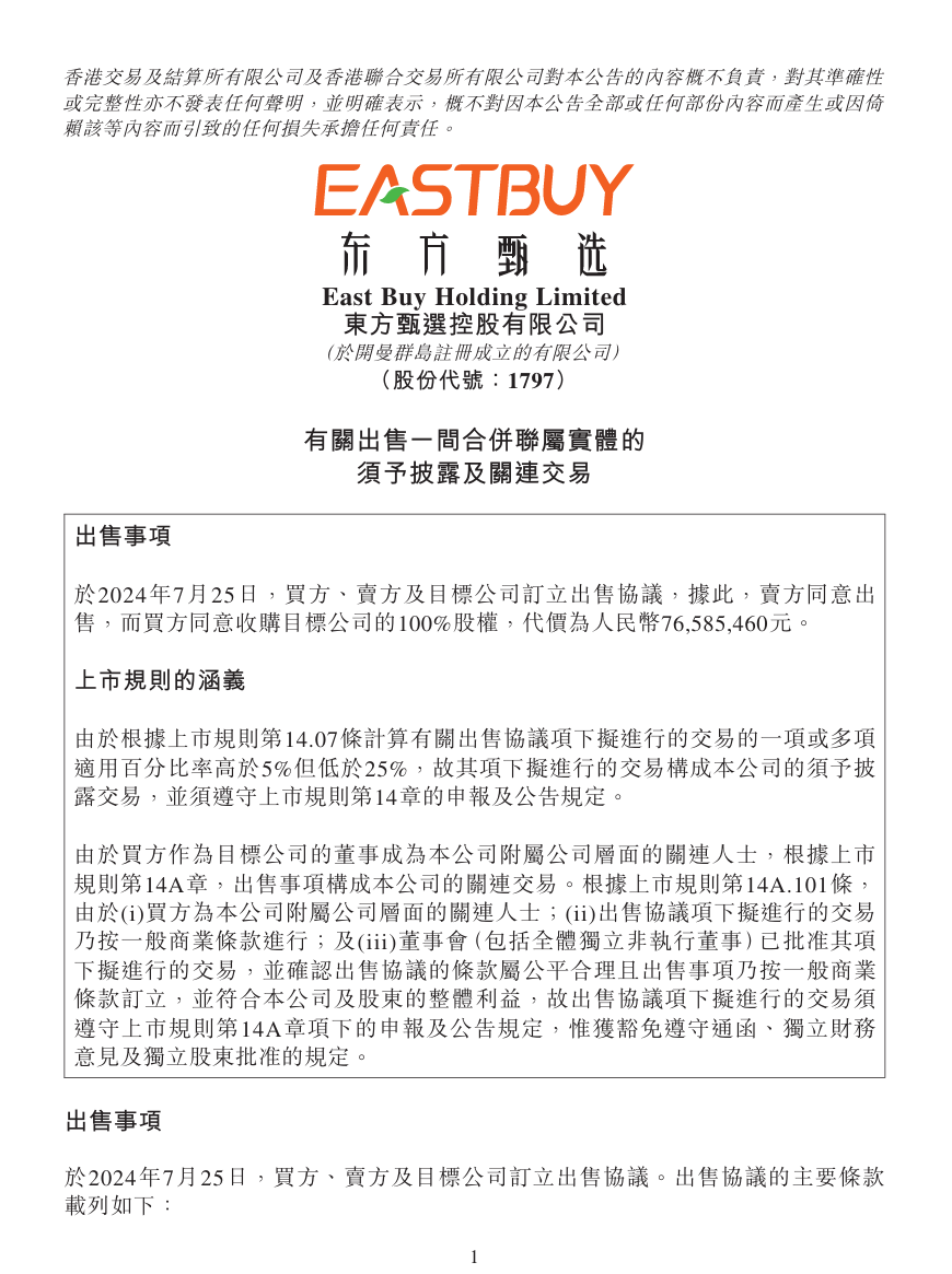 董宇輝(買(mǎi)方)、北京新東方迅程網(wǎng)絡(luò)科技有限公司(賣(mài)方)及與輝同行(北京)科技有限公司(目標(biāo)公司)訂立出售協(xié)議,據(jù)此,賣(mài)方同意出售,而買(mǎi)方同意收購(gòu)目標(biāo)公司的100%股權(quán),代價(jià)為人民幣7658.55萬(wàn)元。