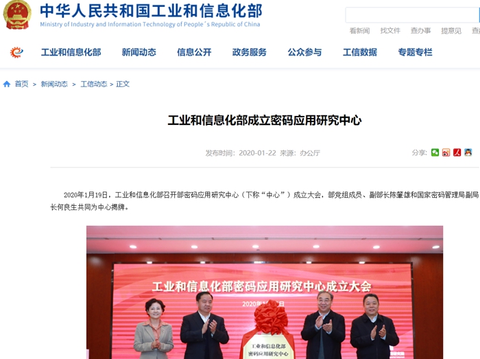 工信部成立密碼應(yīng)用研究中心