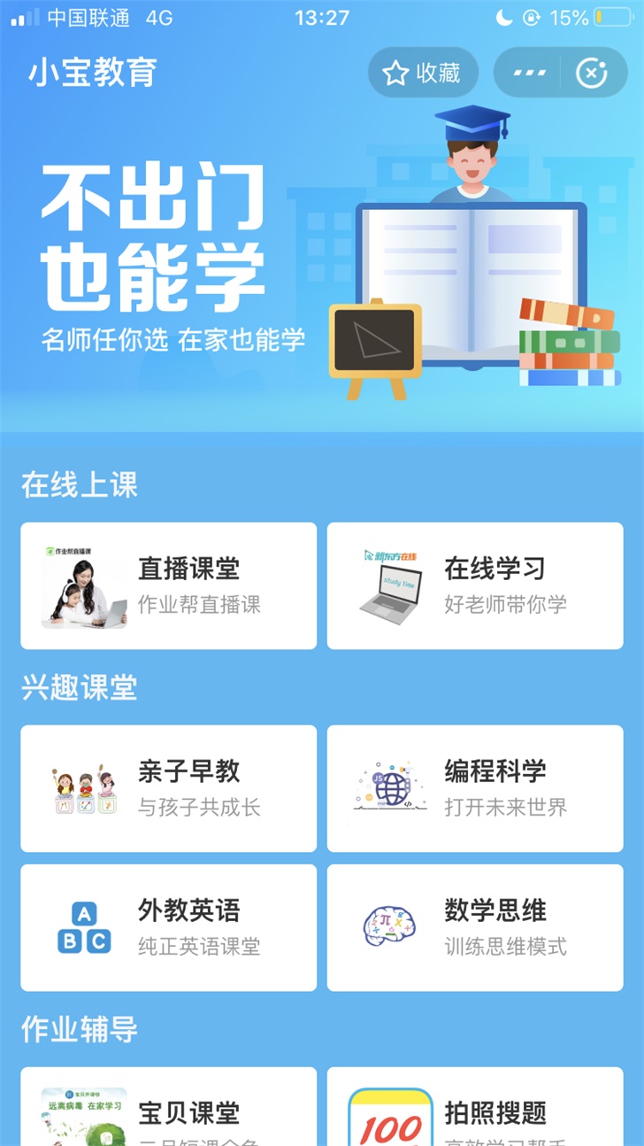 支付寶與阿里云教育聯(lián)合新東方、學(xué)而思、作業(yè)幫、開課啦等知名培訓(xùn)機(jī)構(gòu),推出超過600門免費(fèi)課程,涵蓋幼兒園到高三全年齡段。課程包括小學(xué)、初中、高中的語文、數(shù)學(xué)、英語等學(xué)科教育課程,以及編程、樂理、思維訓(xùn)練、記憶力訓(xùn)練等素質(zhì)教育課程。上支付寶搜“小寶教育”即可。
