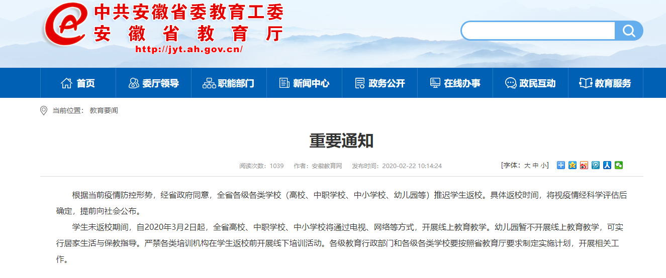 安徽大中小學(xué)3月2日起將全面啟動(dòng)線(xiàn)上教學(xué)