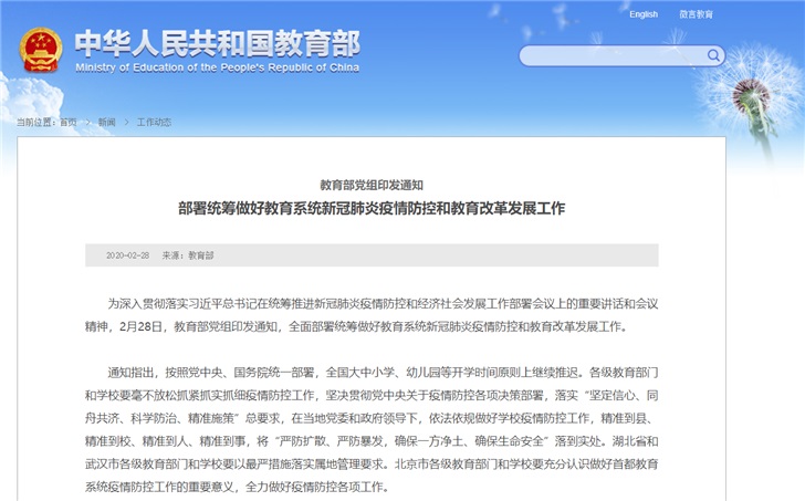 獲悉,此次印發(fā)的文件中要求各地和中小學要規(guī)范線上教學組織行為,不斷豐富學習資源。高校要結合本校實際情況,制定一校一策、一校多策的在線教學方案,開展教學內容改革和教學模式與方法創(chuàng)新,確保網絡安全和運行穩(wěn)定。