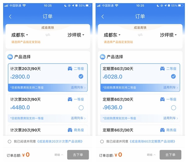 而成渝高鐵普通票商務(wù)座價(jià)格在 460-495 元之間,一等座在 250 元左右,二等座在 150 元左右。如果足額利用乘車(chē)次數(shù),相較于二等座最貴的 168 元票價(jià),一張定期票可以節(jié)省原價(jià)的 40% 。