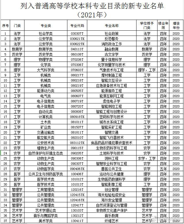 2.列入普通高等學(xué)校本科專業(yè)目錄的新專業(yè)名單(2021年)