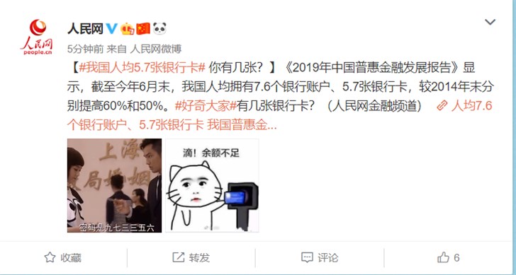 央行報告:我國人均擁有7.6個銀行賬戶、持有5.7張銀行卡