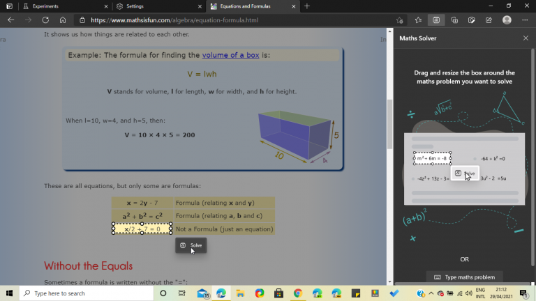 2021-04-30 11:58:54閱讀()互聯(lián)網(wǎng)4月30日消息上個月,微軟在其Edge瀏覽器中宣布了一項新的“MathSolver”(數(shù)學(xué)求解器)功能,可以幫助用戶解決數(shù)學(xué)問題。最近幾周在Canary頻道內(nèi)測試該功能后,微軟終于將MathSolver帶給了運(yùn)行穩(wěn)定版Edge瀏覽器的用戶。