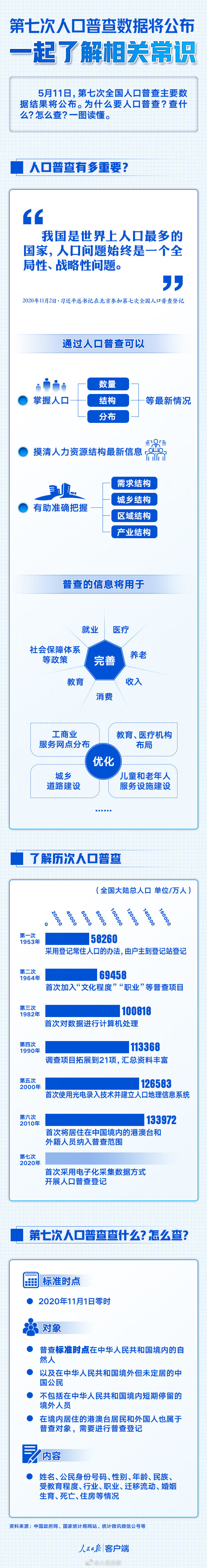 5月11日,第七次全國人口普查主要數(shù)據(jù)結(jié)果將公布。為什么要人口普查?查什么?怎么查?一圖帶你讀懂↓↓ ????