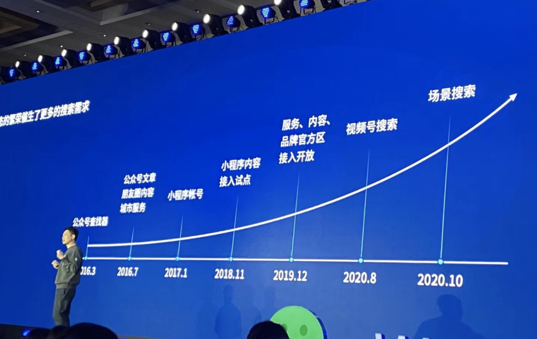 最開始,「搜一搜」團(tuán)隊(duì)只是為微信公眾號(hào)提供一個(gè)查找器的功能,后來用戶有搜索公眾號(hào)文章、朋友圈、城市服務(wù)的需求,團(tuán)隊(duì)又把這些功能相應(yīng)補(bǔ)齊了。隨著小程序生態(tài)的逐漸繁榮「搜一搜」也支持了小程序賬號(hào)和內(nèi)容的搜索。