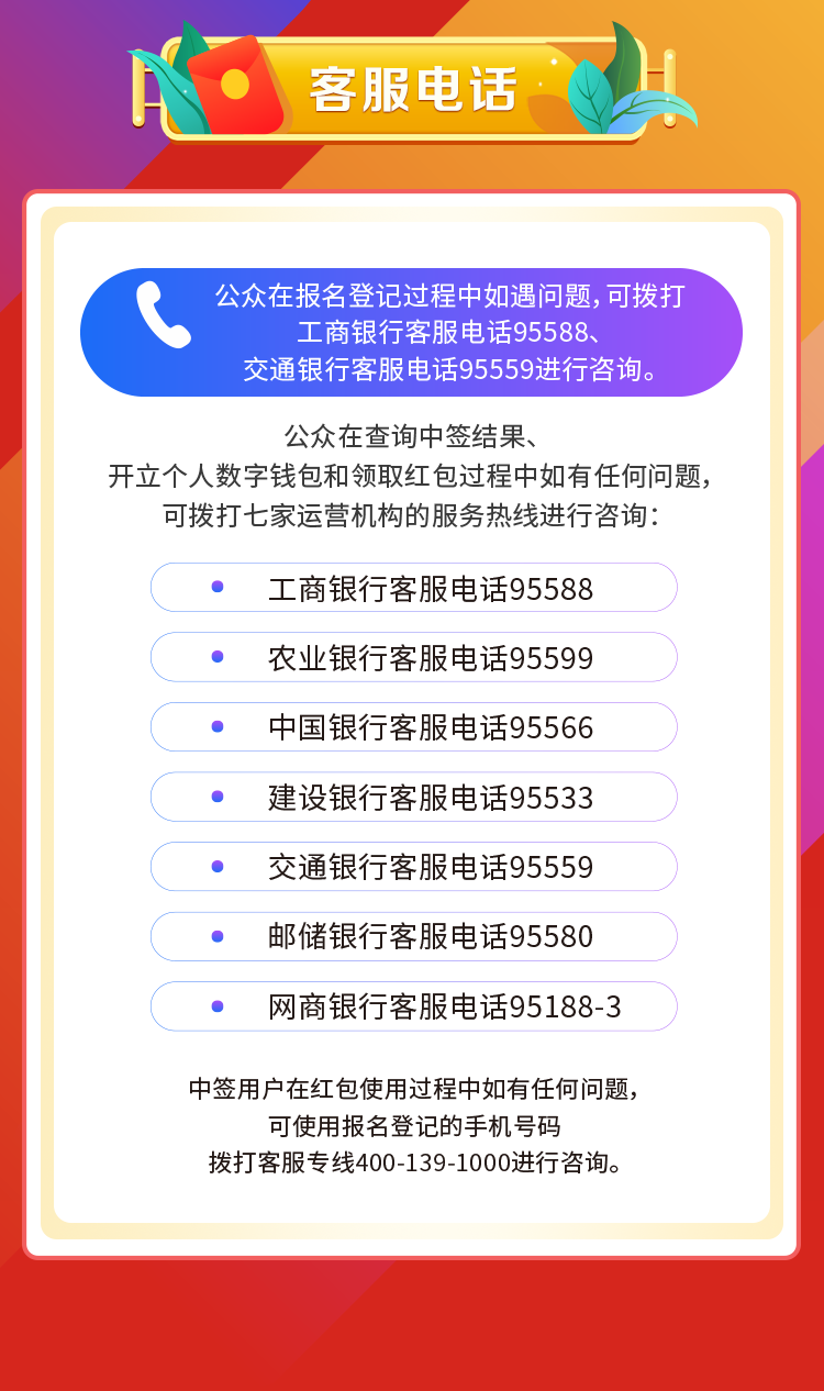 答:經(jīng)國務(wù)院批準,人民銀行組織部分商業(yè)銀行和有關(guān)機構(gòu)共同開展數(shù)字人民幣體系的研發(fā),根據(jù)本次活動的試點準備情況,目前工行、農(nóng)行、中行、建行、交行、郵儲和網(wǎng)商銀行七家運營機構(gòu),已具備參與此次紅包活動的條件,其他參研機構(gòu)正在積極進行研發(fā)。